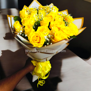 20 Yellow Rose Bouquet in White Paper Packing