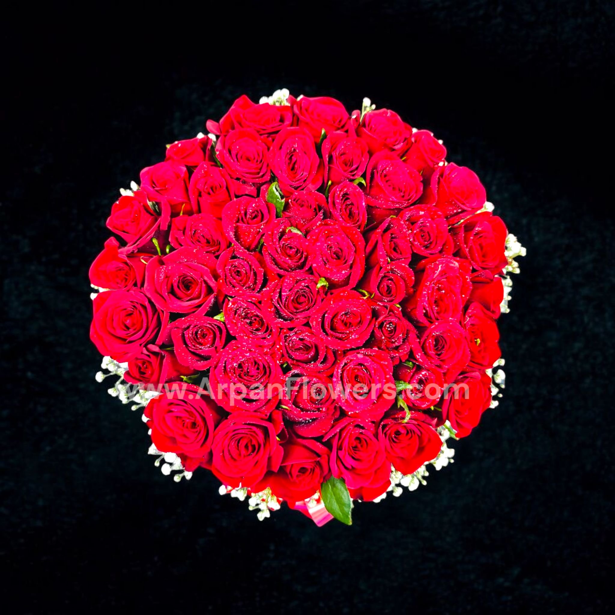 50 Rose in Box With Baby’s Breath