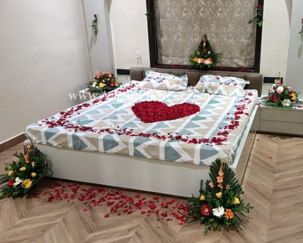 First Night Bed Decoration With Rajnigandha