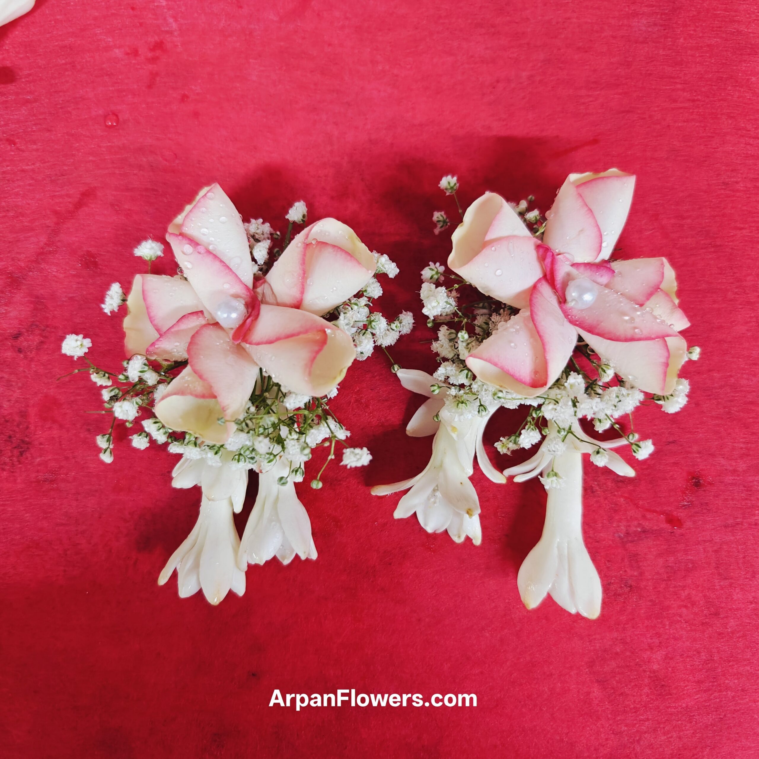 Flower jewelry with a combination of roses and Gypsophila (commonly known as Baby’s Breath) can result in delicate and elegant accessories. Here’s how you might craft such jewelry: