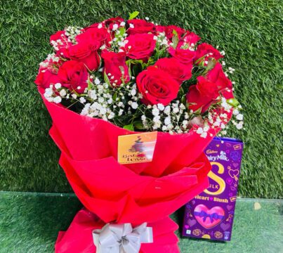Receiving a Bouquet of Chocolates is a dream come true moment. Let someone feel its excitement by sending this Bouquet of 10 Cadbury’s Dairy Milk Chocolates to them. These Chocolates are carefully wrapped in Blue and Red paper for your loved ones.