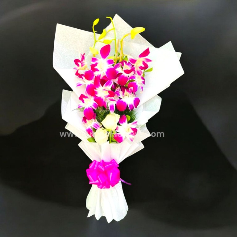 White Rose With Orchid Bouquet